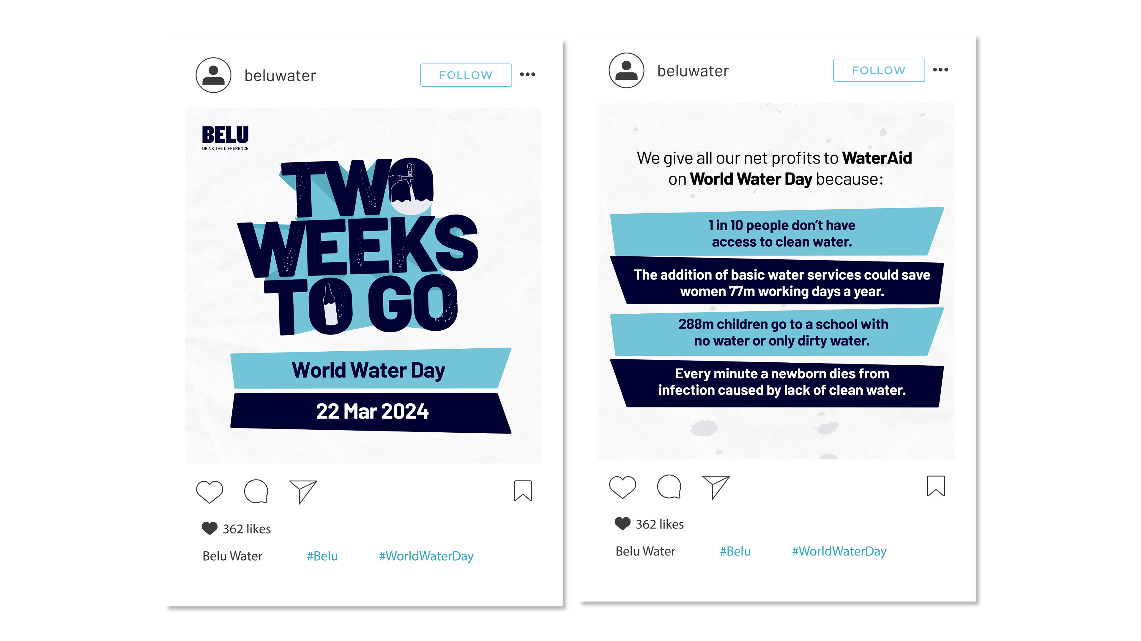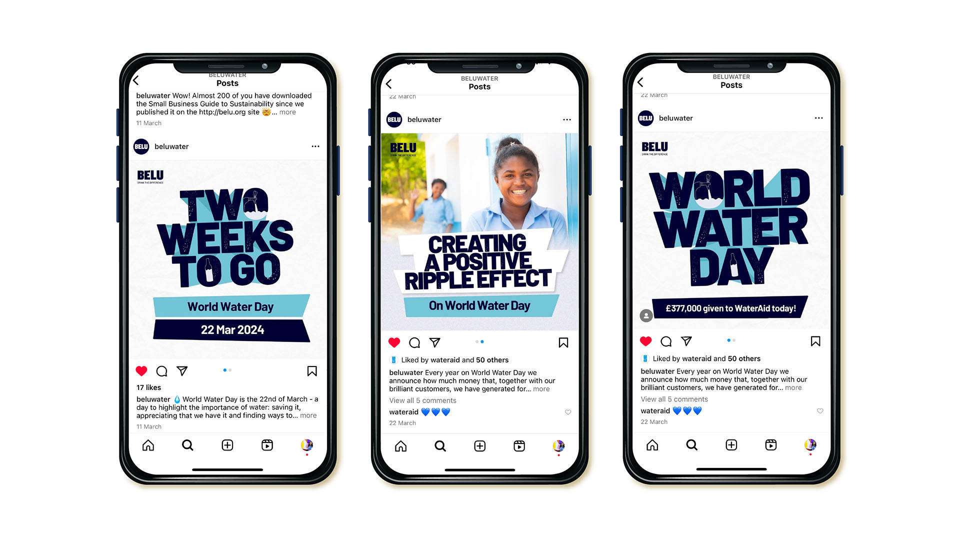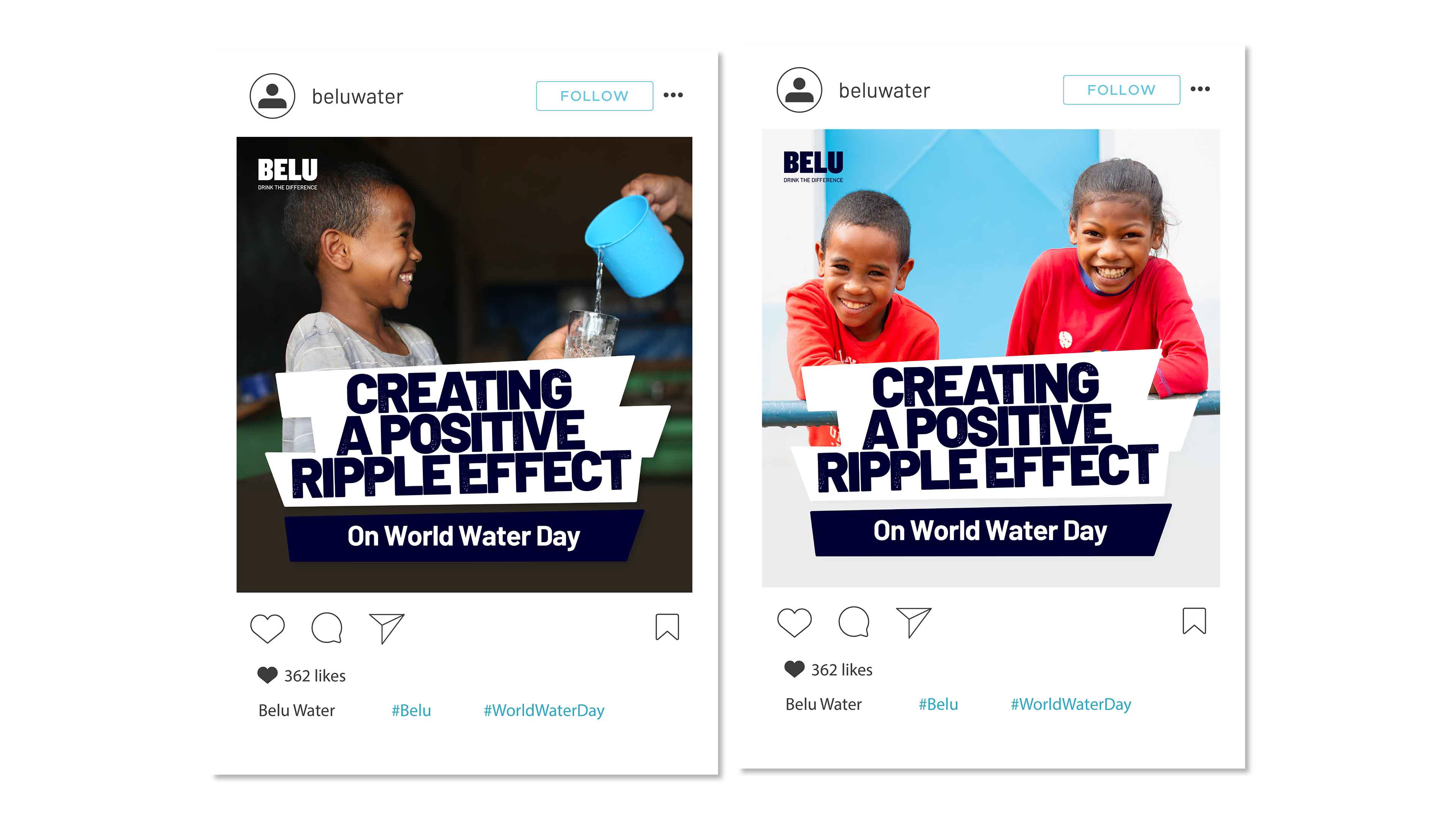 Creative social media campaign development for Belu Water, a purpose-led drinks business and social enterprise.